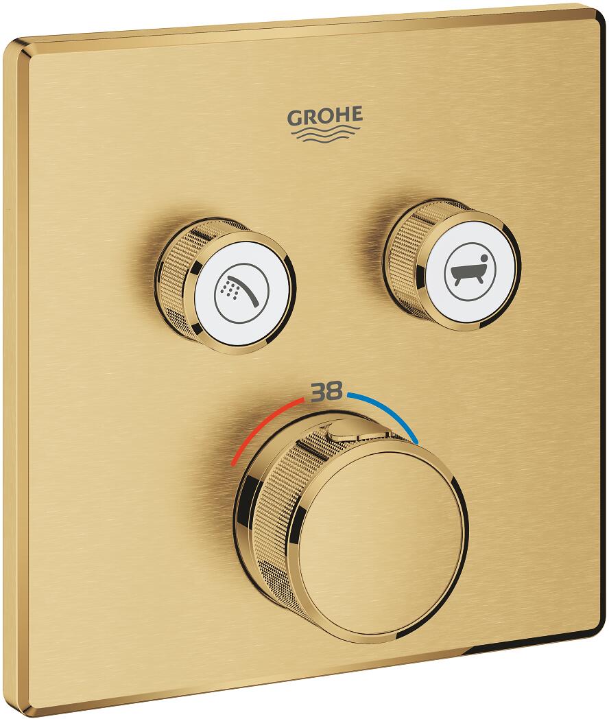 GROHE Grohtherm SmartControl Thermostat, mit 2 Absperrventilen, Fertigmontageset für Rapido SmartBox, Wandrosette eckig, cool sunrise gebürstet (29124