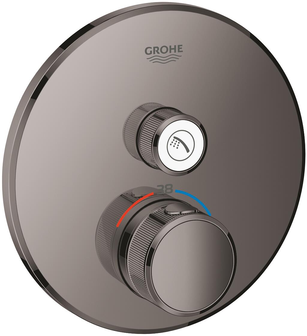 GROHE Grohtherm SmartControl Thermostat, mit einem Absperrventil, Fertigmontageset für Rapido SmartBox, EcoJoy, Wandrosette rund, hard graphite (29118