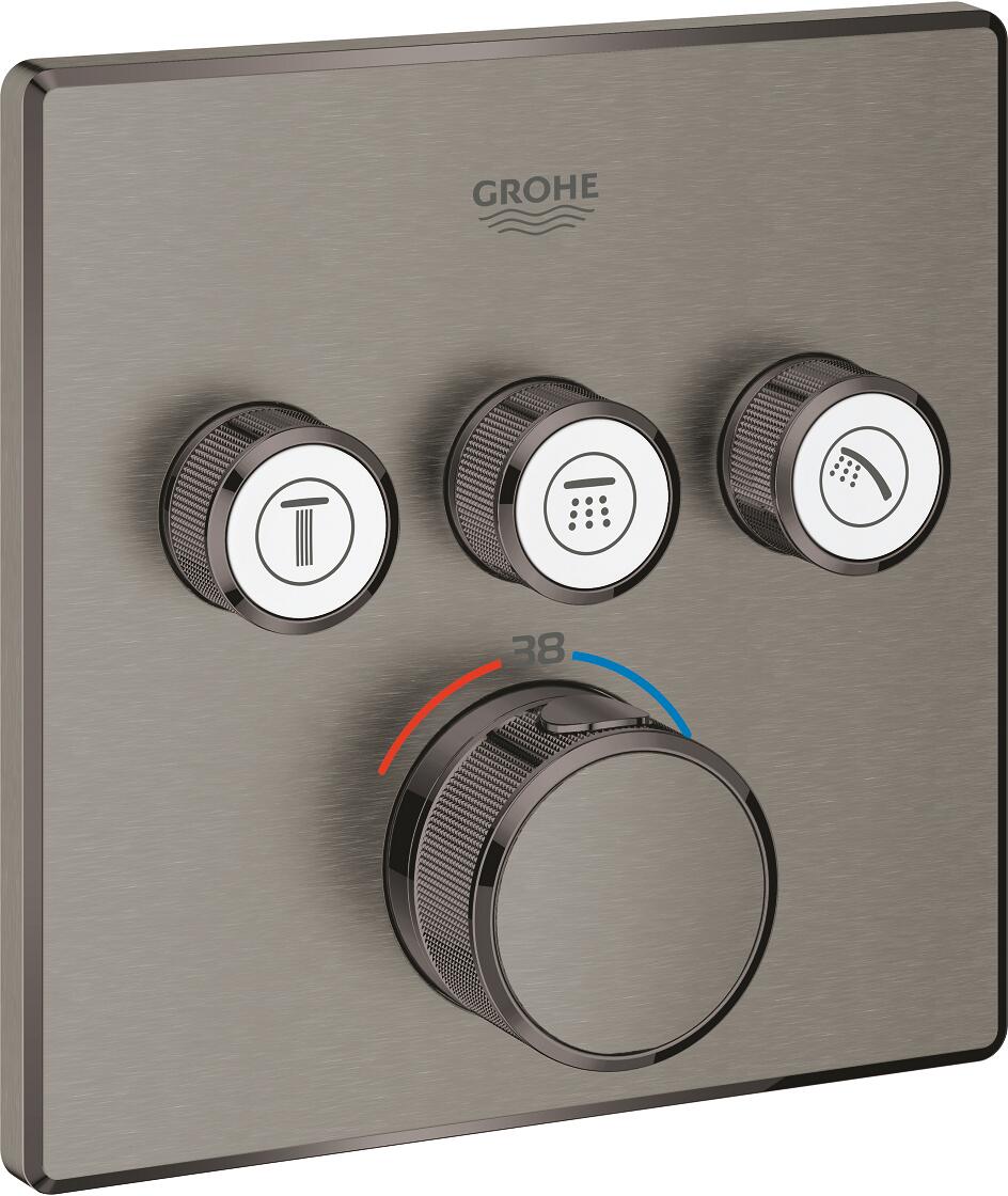 GROHE 3-fach Unterputzventil Grohtherm SmartControl 29127, Fertigmontageset für Rapido SmartBox, Wandrosette eckig, hard graphite