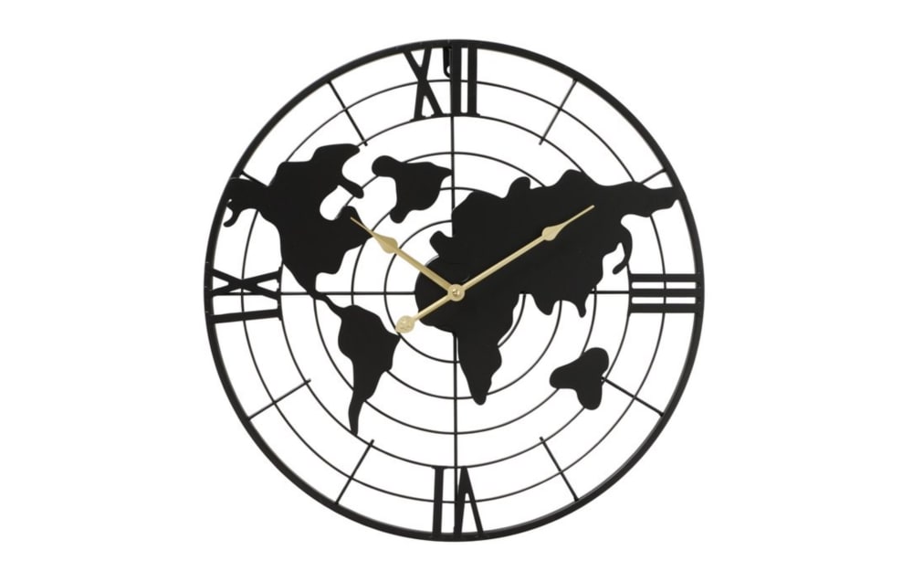 Wanduhr Weltkarte Analog Metall rund Ø 50 cm schwarz Vintage