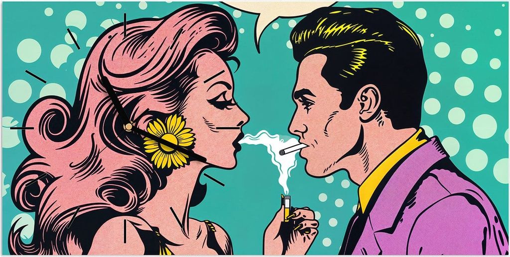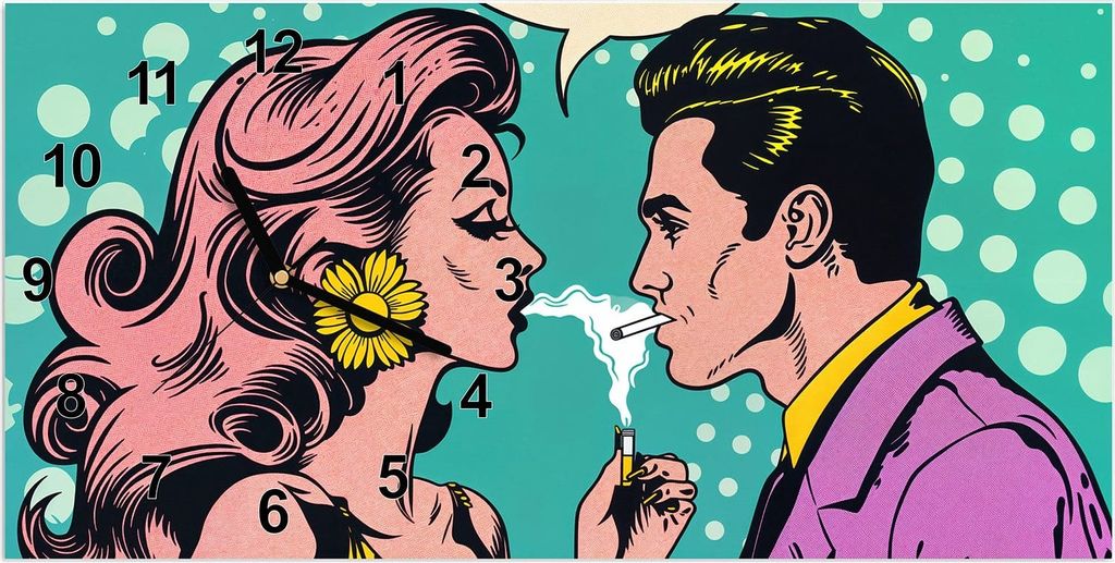 Wanduhr aus Glas mit Motiv Retro Pop Art Duo- 60 x 30 cm - inkl. Aufhängesystem