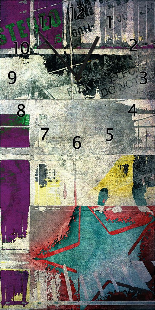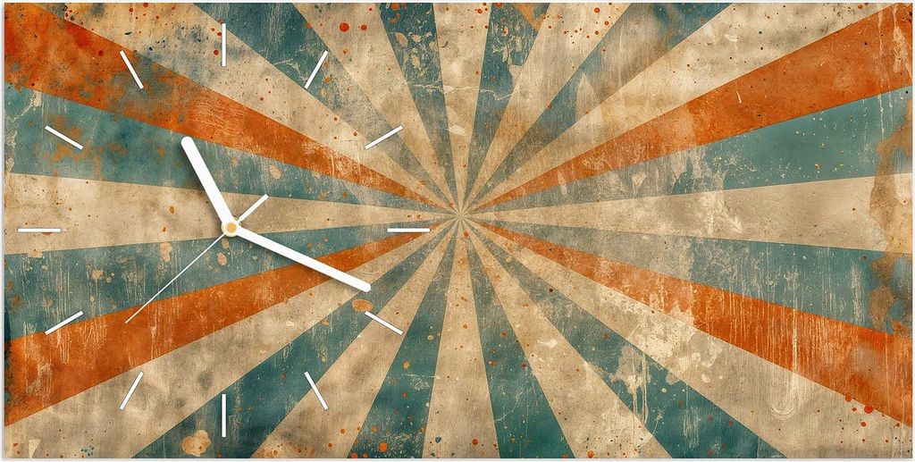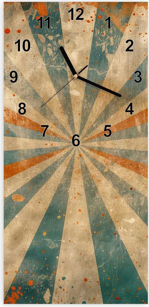 Wanduhr aus Glas mit Motiv Retro Strahlen Design- 30 x 60 cm - inkl. Aufhängesystem