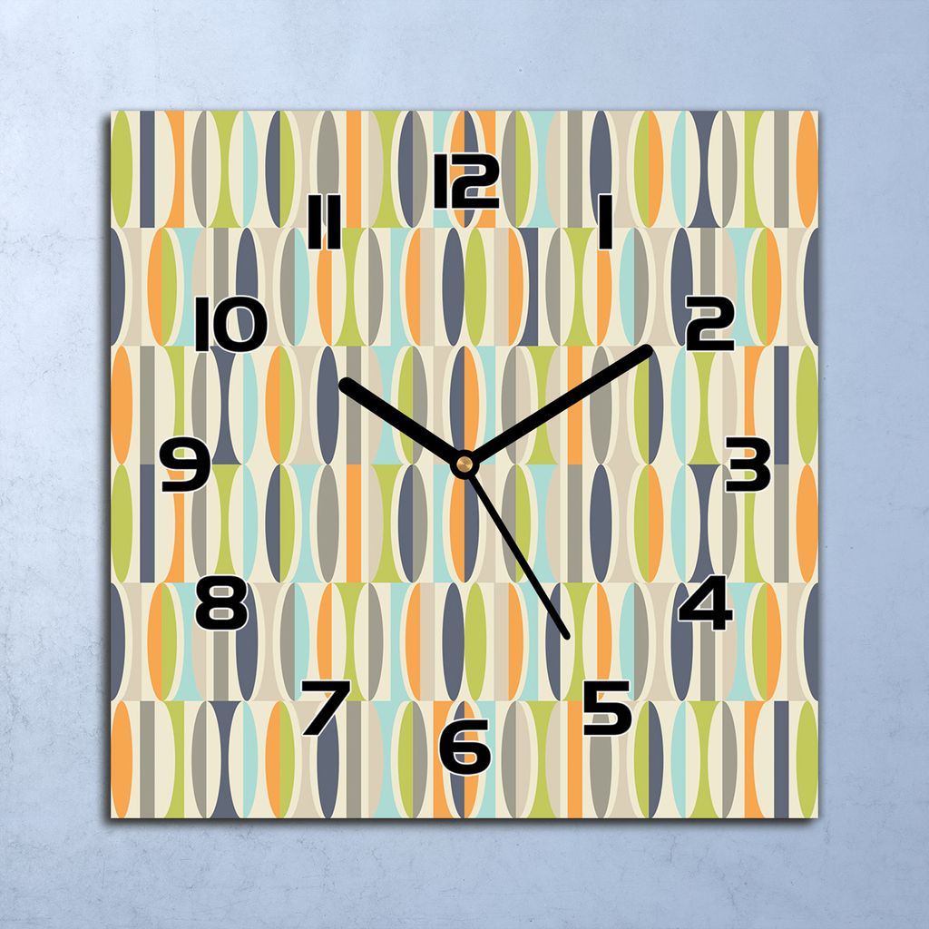 Wanduhr Echt-Glas-Küchenuhr Retro Muster Formen Quarz 30x30 Deko Bilder