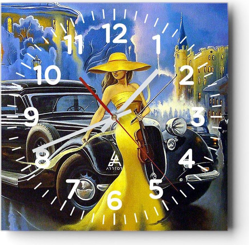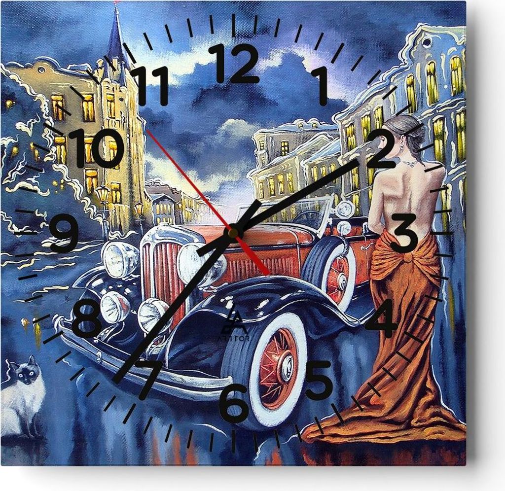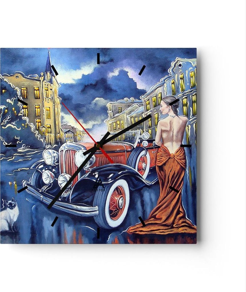 Wanduhr - Quadrat - Glasuhr - Retro auto luxus alt - 40x40cm - Schleichendes Uhrwerk - Lautlos - zum Aufhängen bereit - Dekoration Modern - Wandde...
