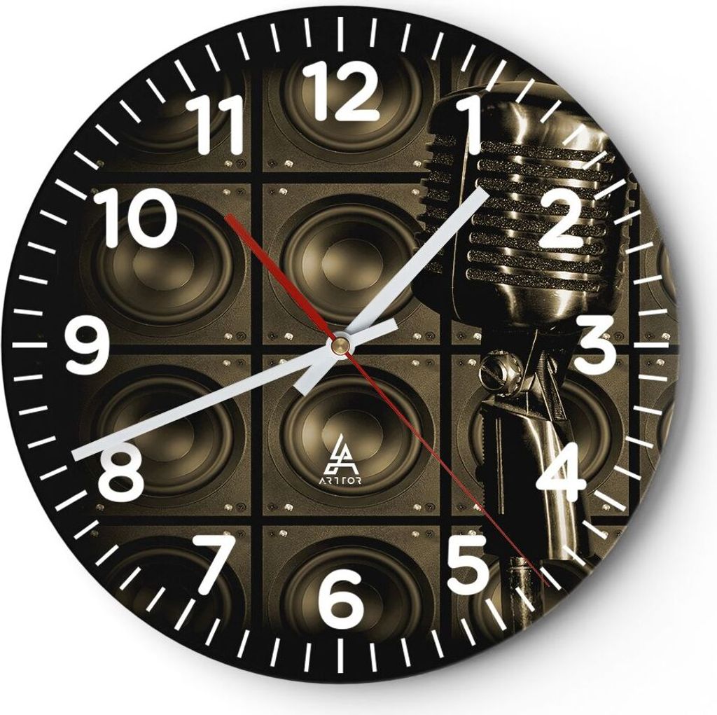 Wanduhr - Rund - Glasuhr - Mikrofon Retro Singen - 40x40cm - Schleichendes Uhrwerk - Lautlos - zum Aufhängen bereit - Dekoration Modern - Wanddeko...