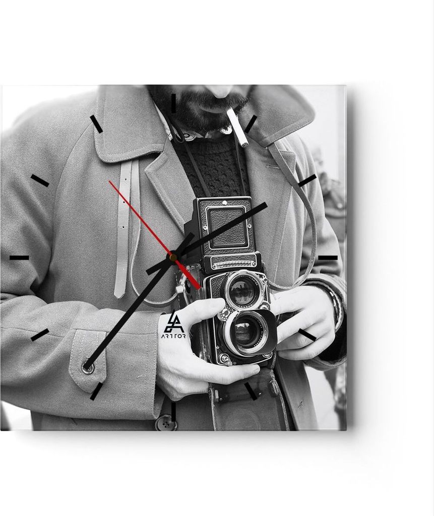 Wanduhr - Quadrat - Glasuhr - Die Kamera Retro Fotografie - 30x30cm - Schleichendes Uhrwerk - Lautlos - zum Aufhängen bereit - Dekoration Modern -...