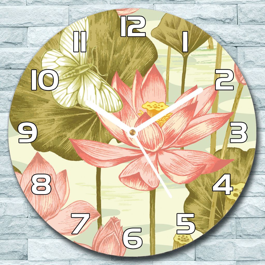 Wanduhr aus Glas Rund fi 30 Retro Lotusblume Quarz Deko Schlafzimmer Büro