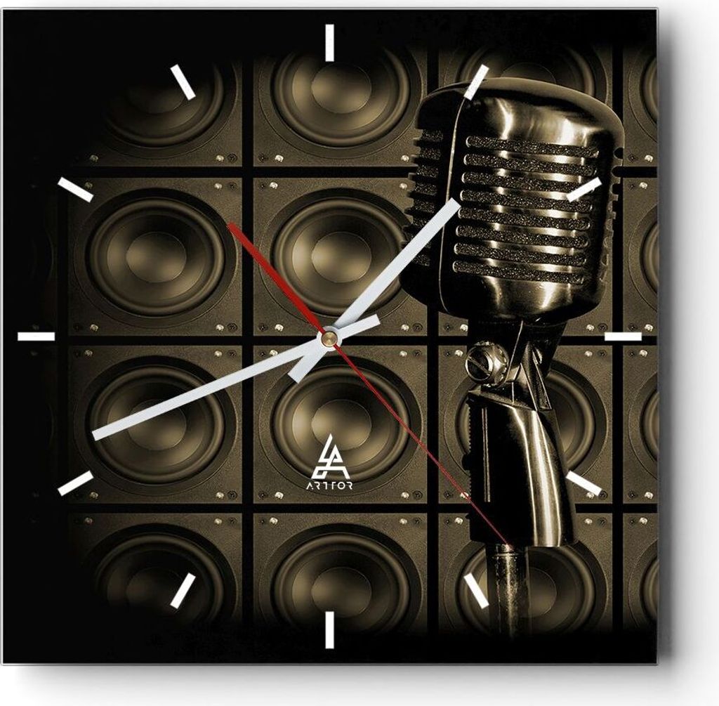 Wanduhr - Quadrat - Glasuhr - Mikrofon Retro Singen - 40x40cm - Schleichendes Uhrwerk - Lautlos - zum Aufhängen bereit - Dekoration Modern - Wandd...