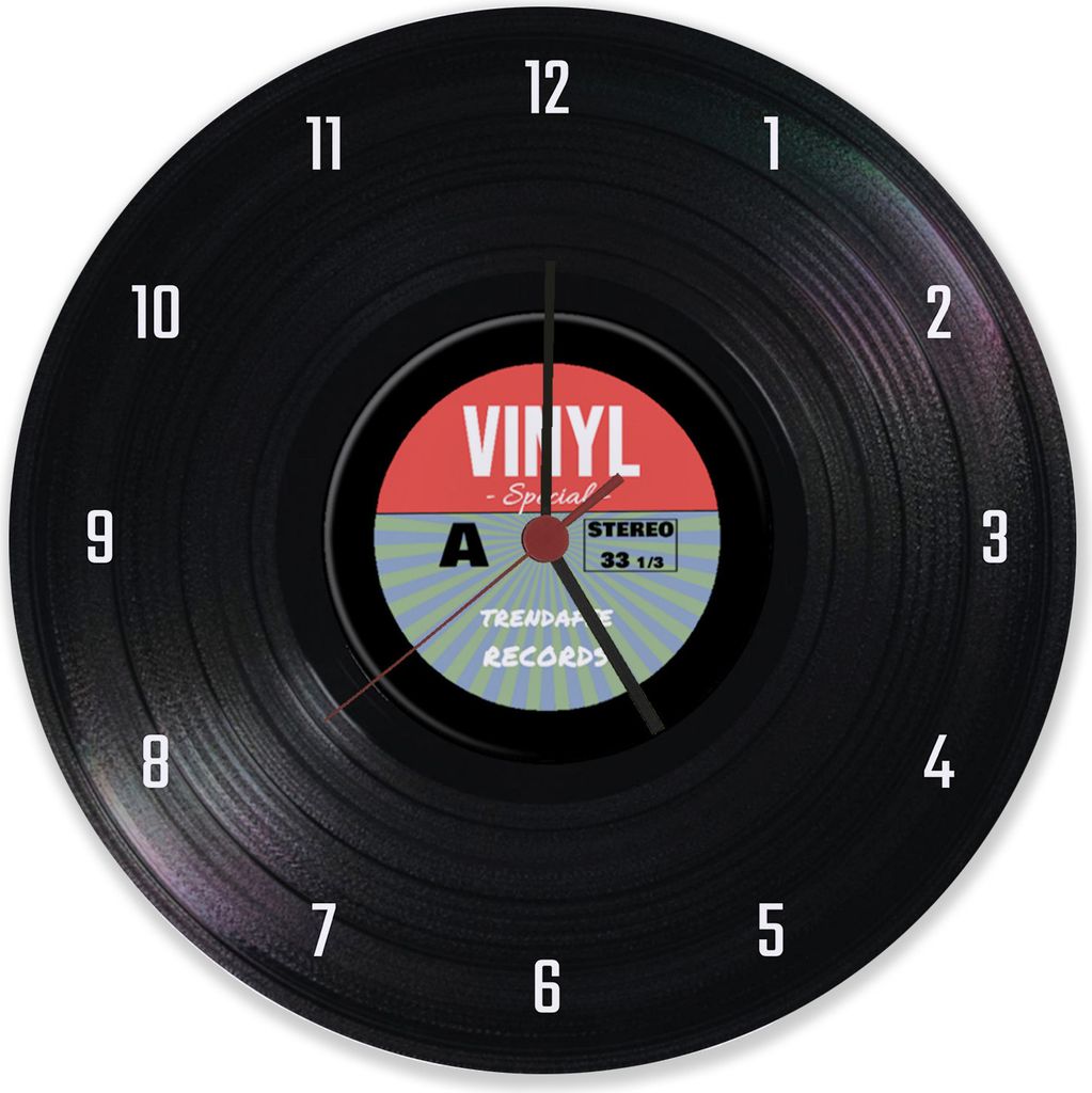 Wanduhr aus Glas Rund fi 30 Vinyls Retro Vintage Quarz Deko Schlafzimmer Büro
