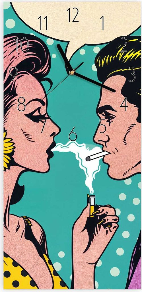 Wanduhr aus Glas mit Motiv Retro Pop Art Duo- 30 x 60 cm - inkl. Aufhängesystem