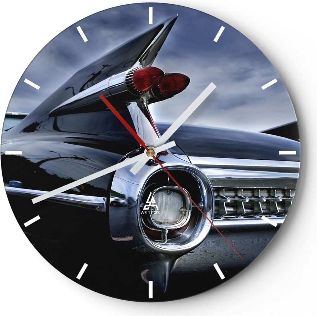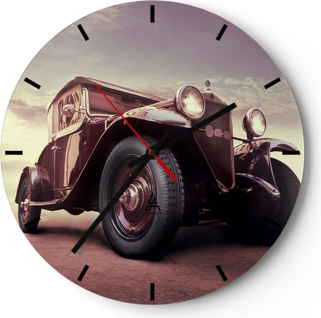 Wanduhr - Rund - Glasuhr - Retro auto luxus alt - 40x40cm - Schleichendes Uhrwerk - Lautlos - zum Aufhängen bereit - Dekoration Modern - Wanddekor...