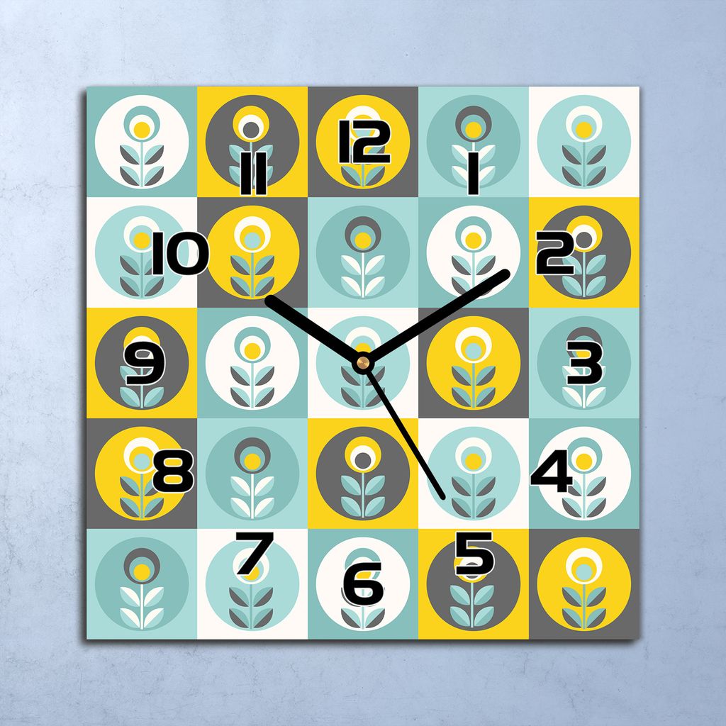 Wanduhr Echt-Glas-Küchenuhr Retro Blumen Muster Quarz 30x30 Deko Bilder