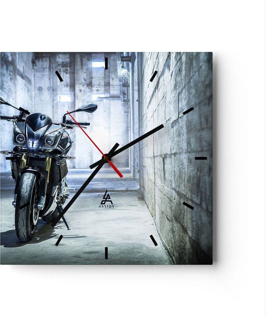 Wanduhr - Quadrat - Glasuhr - Motorrad retro klassisch - 40x40cm - Schleichendes Uhrwerk - Lautlos - zum Aufhängen bereit - Dekoration Modern - Wa...