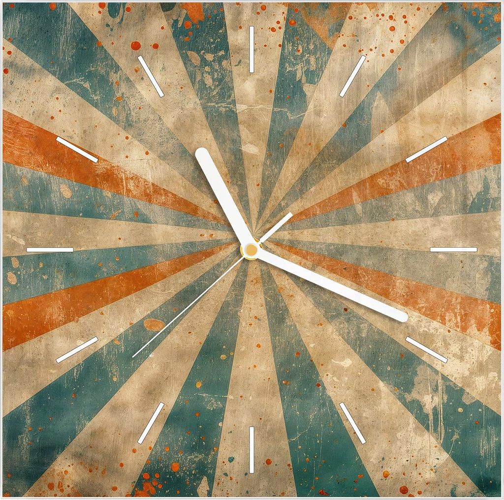 Wanduhr aus Glas mit Motiv Retro Strahlen Design- 30 x 30 cm - inkl. Aufhängesystem