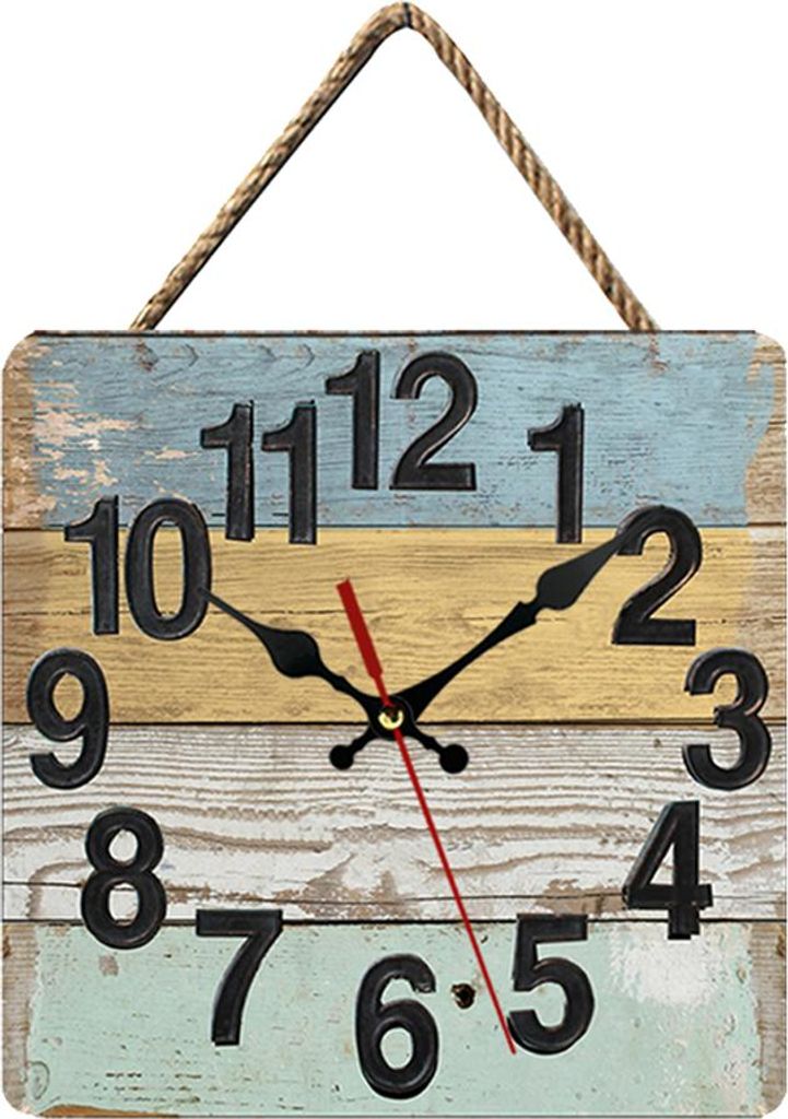 Dekoration für Küche, Wohnzimmer und Büro – Wanduhr aus Holz – Retro-Stil, quadratisch, ländlicher Stil,10 inches