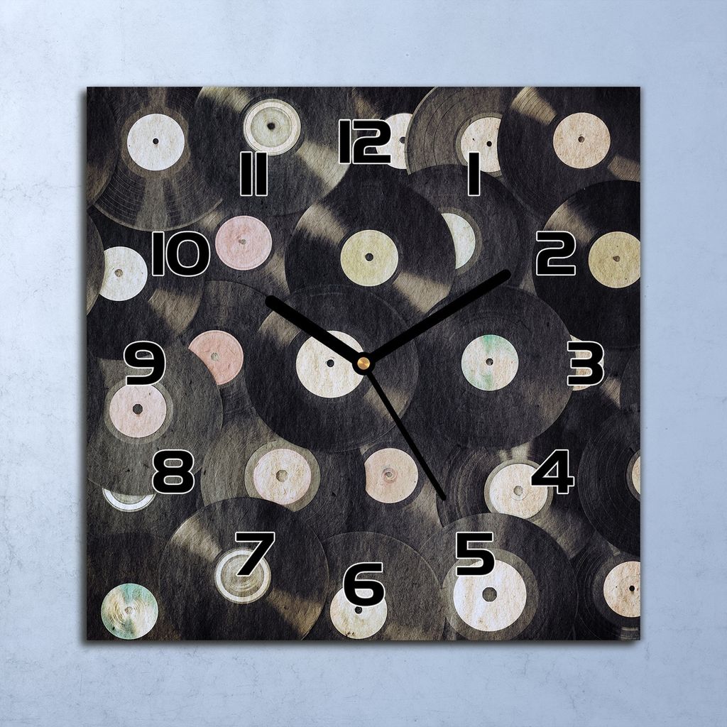 Wanduhr Echt-Glas-Küchenuhr Vinyls Retro Vintage Quarz 30x30 Deko Bilder