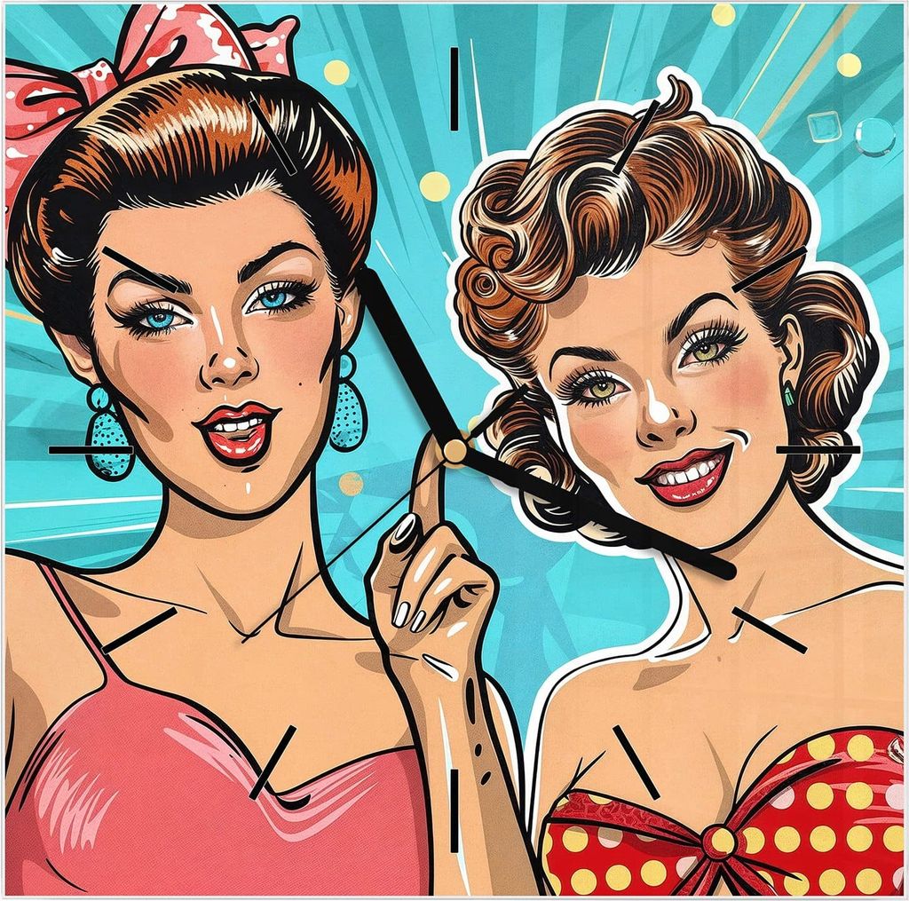 Wanduhr aus Glas mit Motiv Retro Frauen Illustration- 30 x 30 cm - inkl. Aufhängesystem