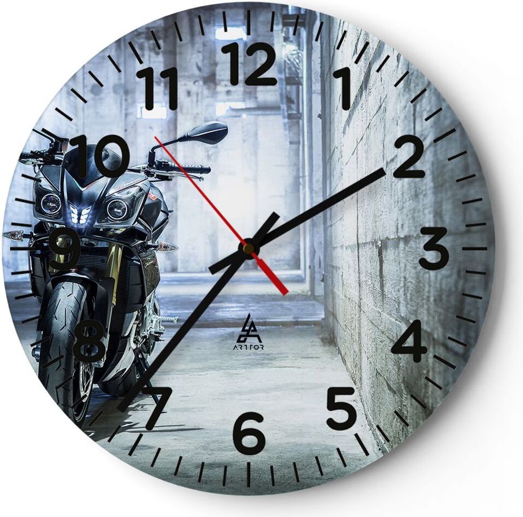 Wanduhr - Rund - Glasuhr - Motorrad retro klassisch - 40x40cm - Schleichendes Uhrwerk - Lautlos - zum Aufhängen bereit - Dekoration Modern - Wandd...