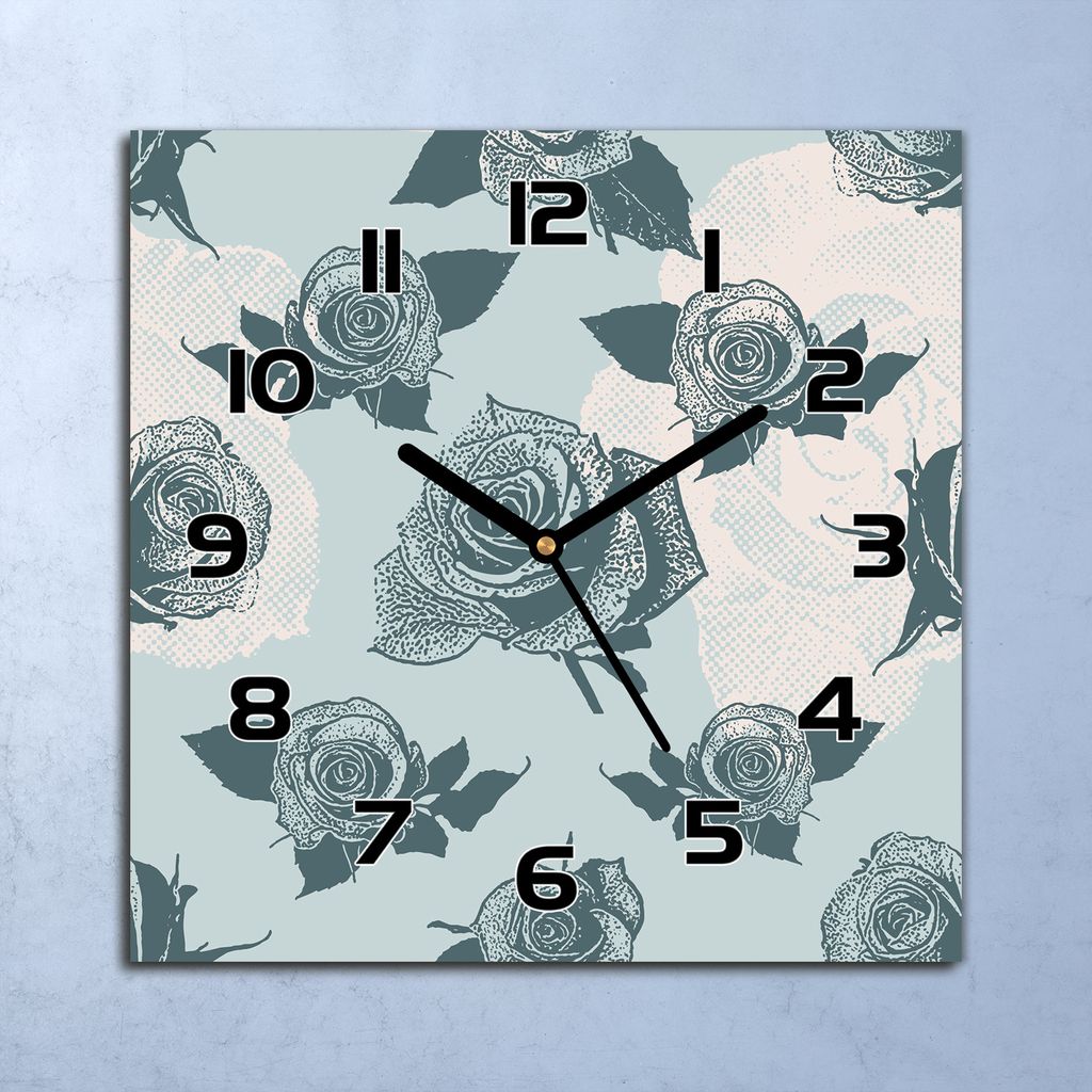Wanduhr Echt-Glas-Küchenuhr Retro Rosen Natur Quarz Lautlos 30x30 Deko Bilder