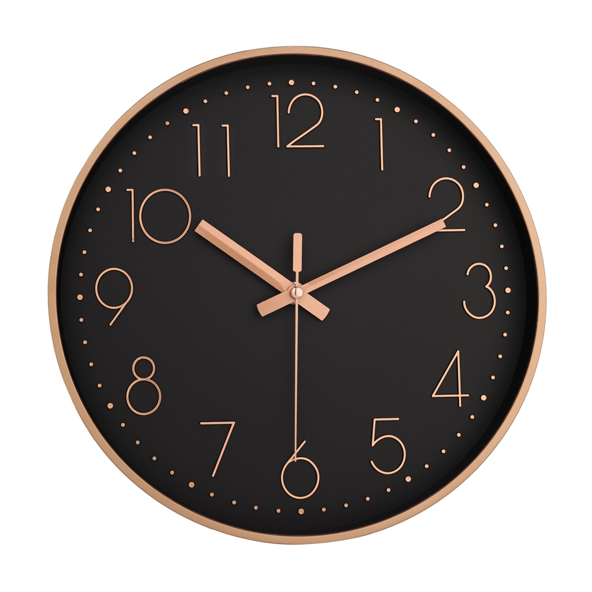 Moderne 12-Zoll Wanduhr mit geräuschlosem Sweep-Uhrwerk, schwarzes Zifferblatt mit Goldrahmen, für Wohn- und Arbeitsräume