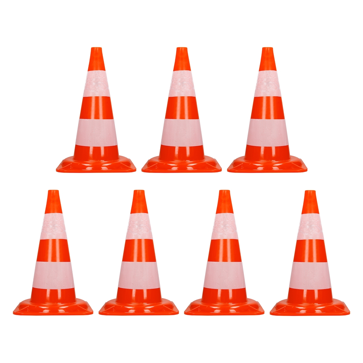ECD Germany 7x Verkehrskegel 47 cm Orange-Weiß 2 Reflektoren Stapelbar Flexibel Warnkegel Leitkegel Verkehrshütchen