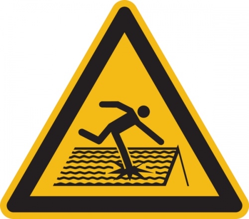 Warnschild, Warnung vor dünnem Eis, DIN 4844-2, ISO 7010, Aluminium, SL = 400 mm