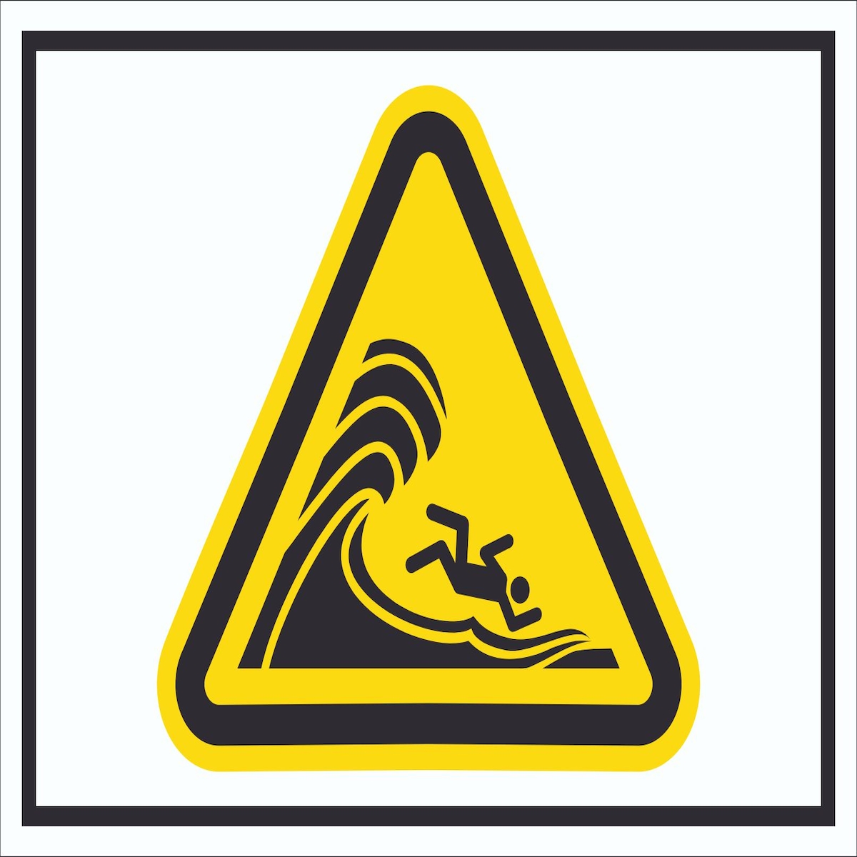 Schild Warnung Tsunami-gefährdeter Bereich Symbol A5 Rückseite selbstklebend
