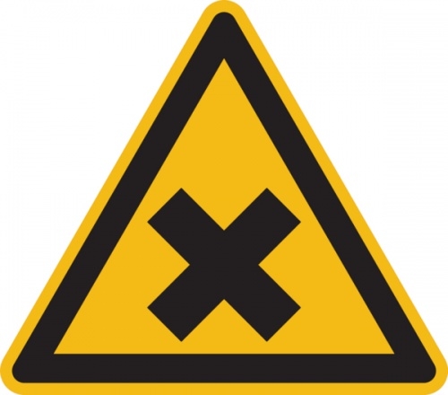 König Werbeanlagen Warnzeichen, Warnung vor gesundheitsschädlichen oder reizenden Stoffen W018 - DIN 4844/BGV A8 - 200 mm Folie selbstklebend