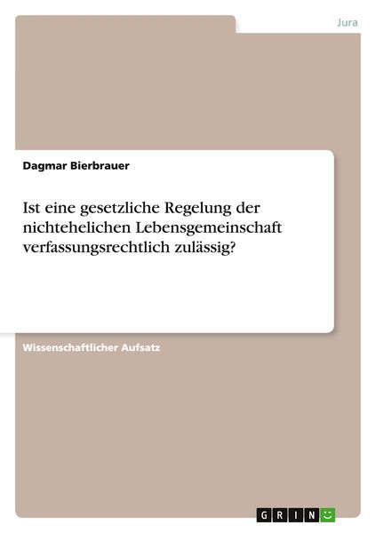 Ist eine gesetzliche Regelung der nichtehelichen Lebensgemeinschaft verfassungsrechtlich zulässig?, Taschenbuch von Dagmar Bierbrauer, GRIN,