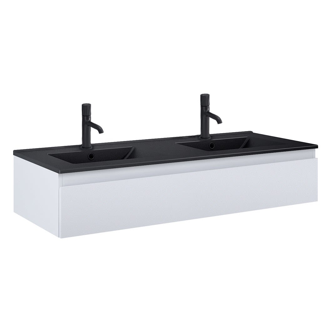 Waschbecken Set weiß 120 cm mattweiß Doppelbecken ohne Hahnloch V