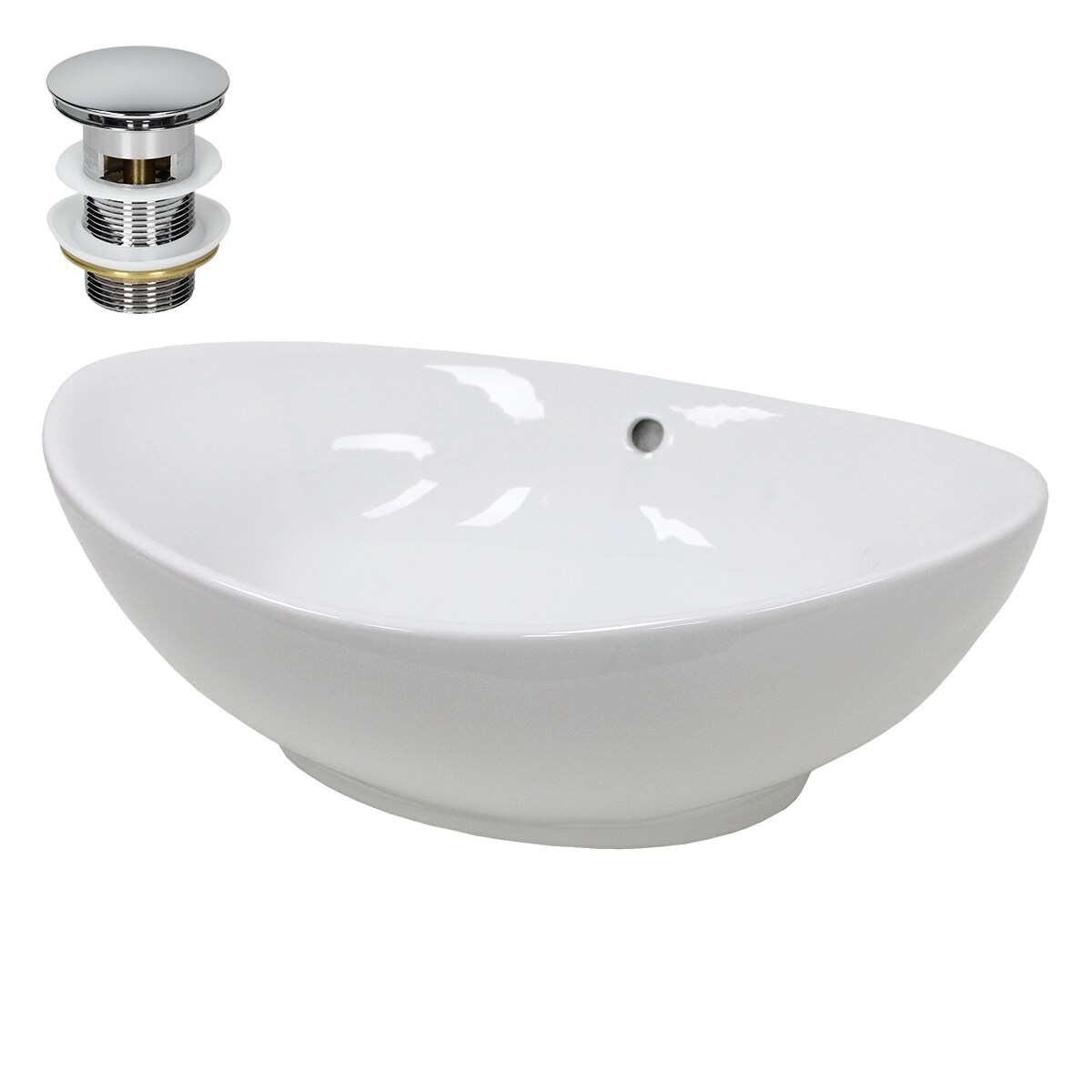 LuxeBath Waschbecken Aufsatzwaschbecken Oval, 59x39x20 cm, Weiß, aus Keramik, inkl. Ablaufgarnitur mit Überlauf