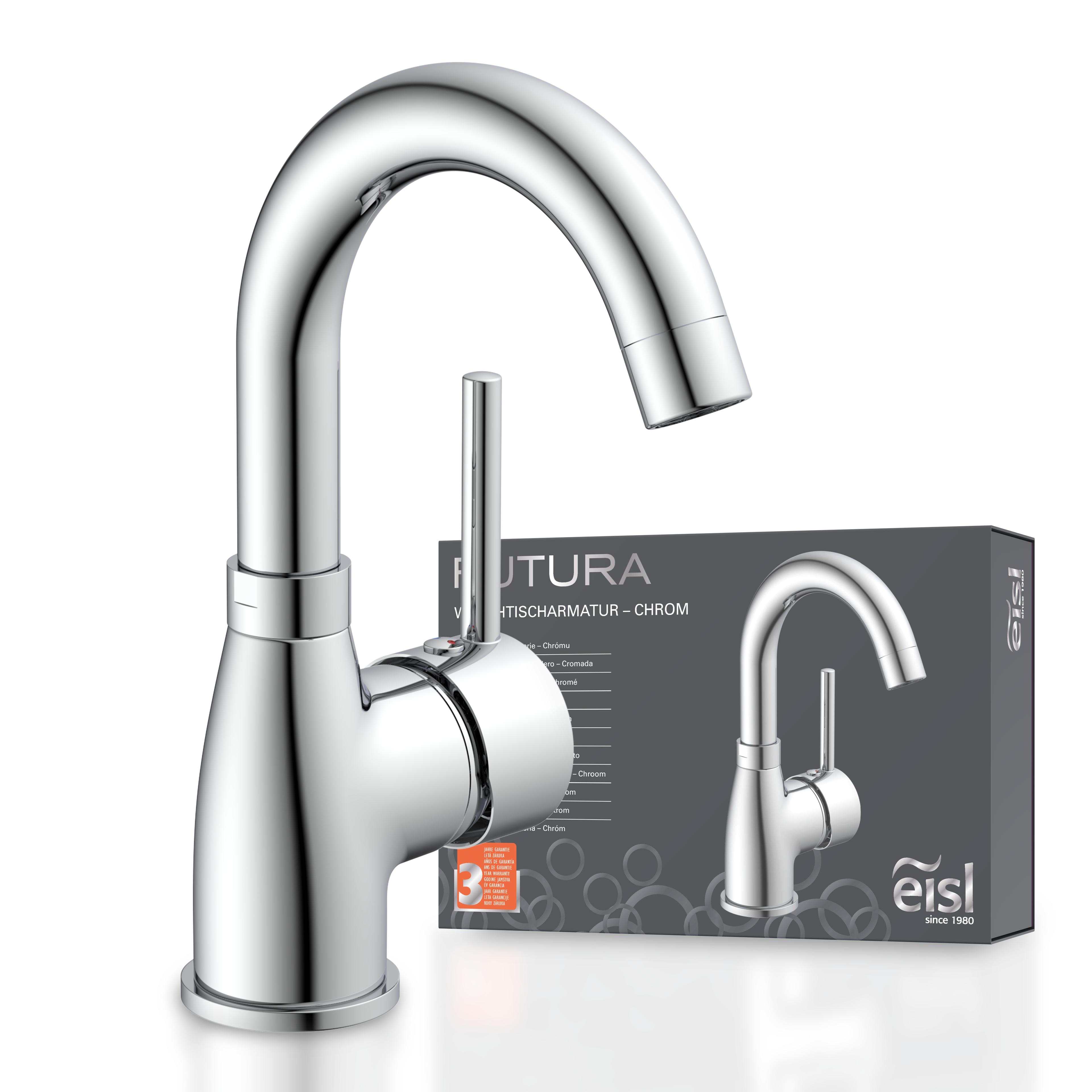 EISL Waschtischarmatur FUTURA, Chrom, Waschbeckenarmatur mit hohem Auslauf, Hochdruck, 360° Schwenkbereich