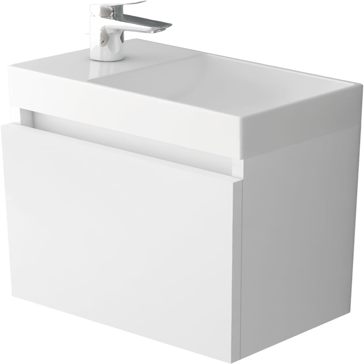 Alpenberger Gäste WC Badmöbel Waschbecken mit Unterschrank | Waschbeckenunterschrank Waschplätze, Badschrank Hängend Weiss Badezimmermöbel Vormontiert