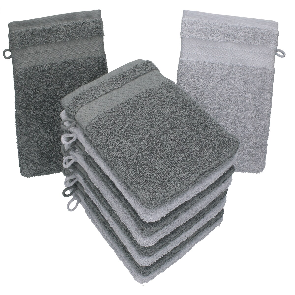Betz 10 Stück Waschhandschuhe PREMIUM 100% Baumwolle Waschlappen Set 16x21 cm Farbe anthrazit und silbergrau