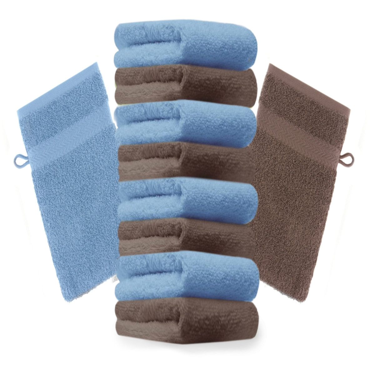 Betz 10 Stück Waschhandschuhe PREMIUM 100% Baumwolle Waschlappen Set 16x21 cm Farbe hellblau und nussbraun