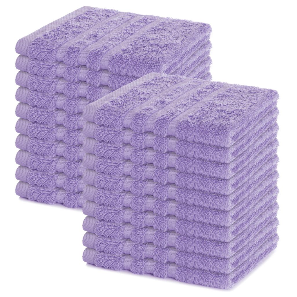 Lavea 20er Seiftuch Set 30x30 cm, 100% Baumwolle Frottier, Gästehandtücher & Waschlappen, waschbar 60°C, Serie Elena, Bad & Gäste-WC, Lavendel