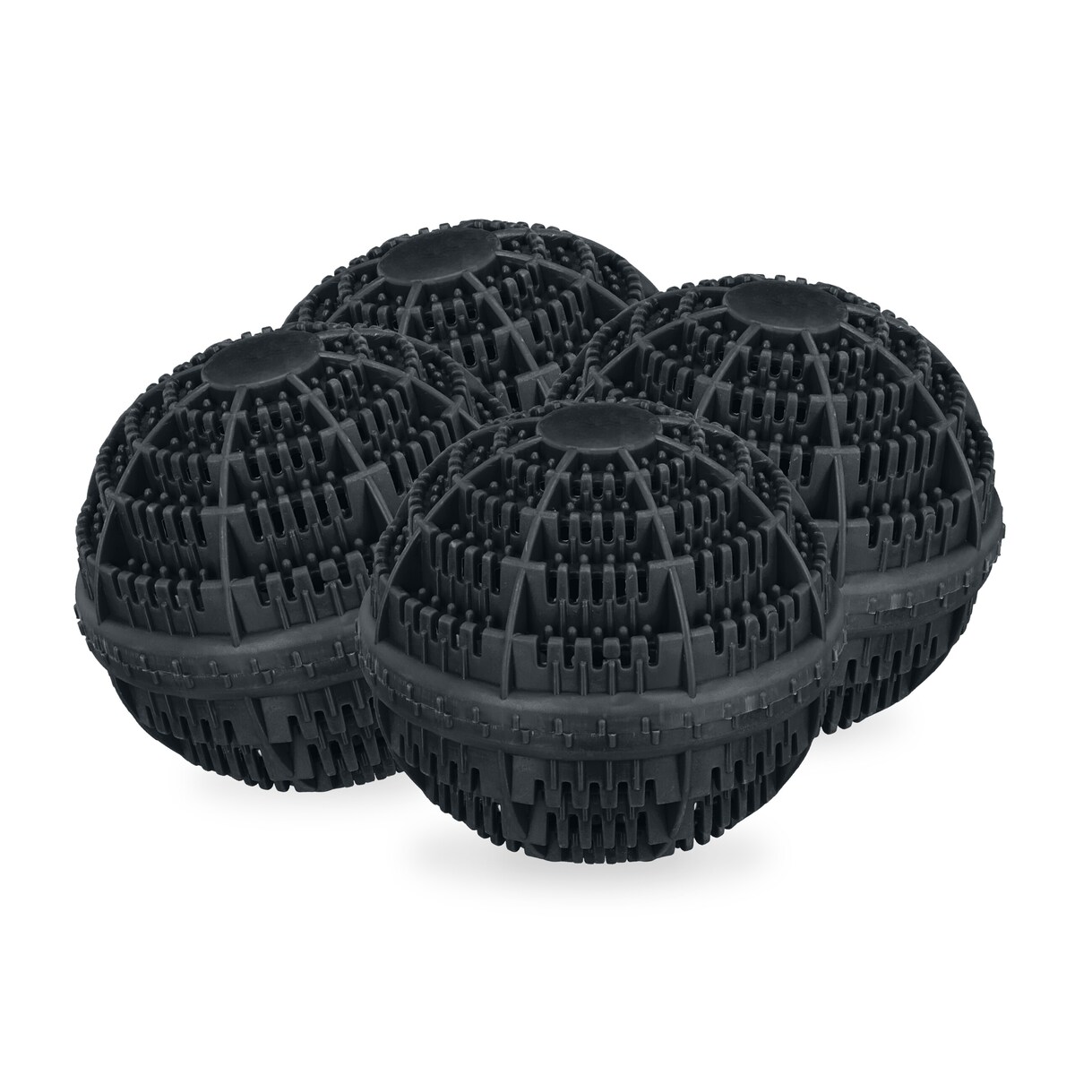 Relaxdays Waschball 4er Set, Waschkugel für Waschmaschine, ökologisch, hautfreundlich, Waschen ohne Waschmittel, schwarz