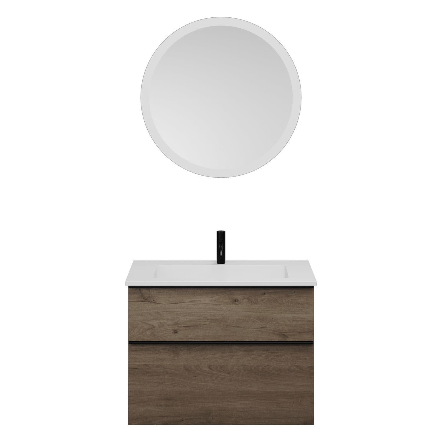 60cm Dick Keramik Waschtisch mit Unterschrank Badmöbel Set mit Türs Soft-close - Eiche Matt