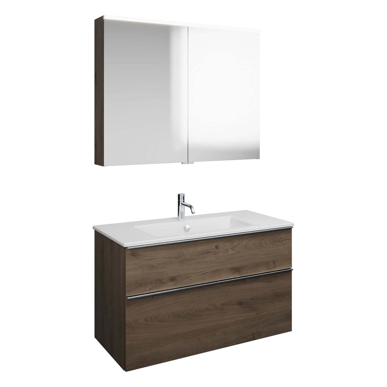 burgbad Eqio Badmöbel-Set 102 cm mit Keramik-Waschtisch Slim und Unterschrank mit Griffleiste G0251, mit Spiegelschrank, Badmöbel,