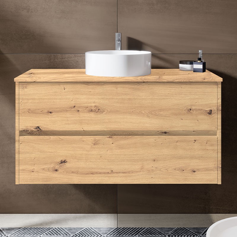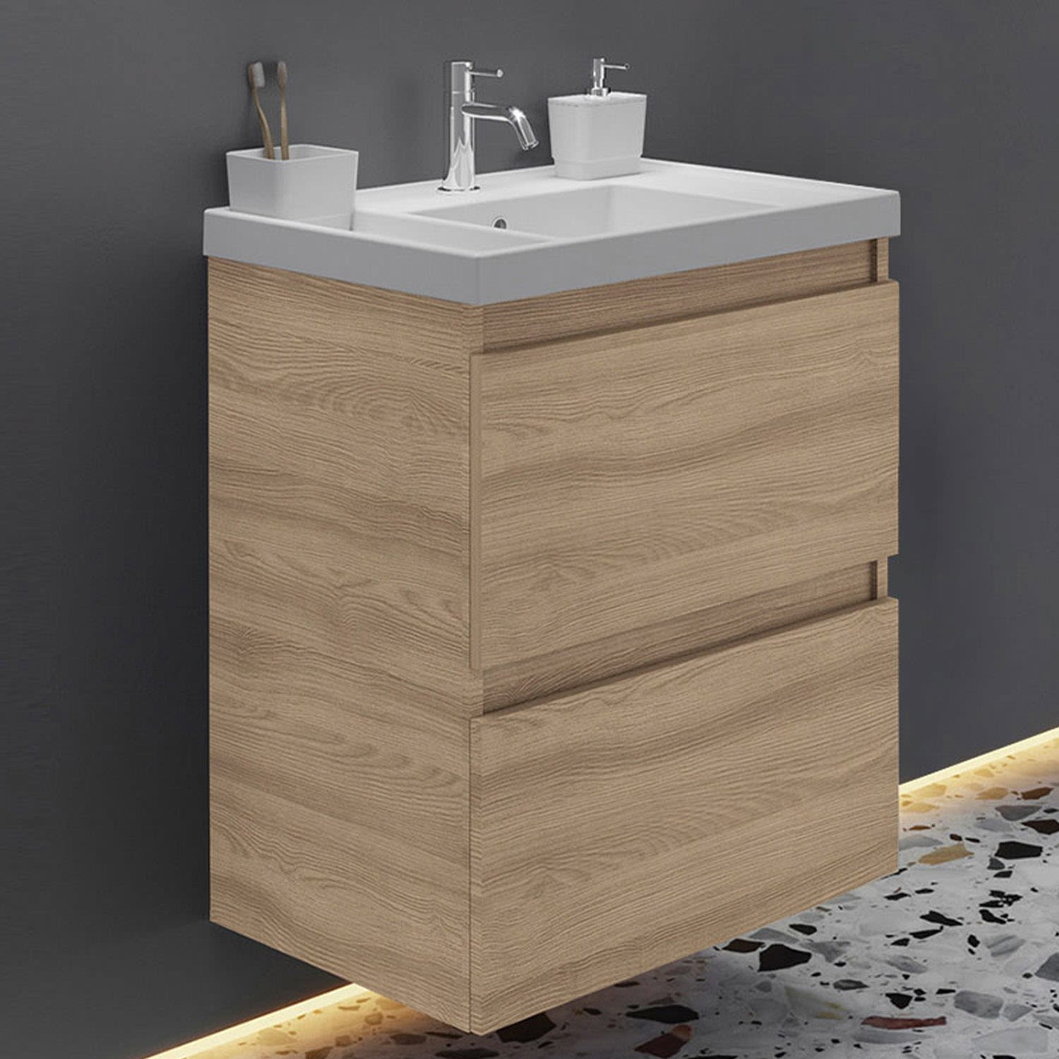 Badezimmermöbel 60cm CINIC-Serie Dickes Keramik Waschtisch mit Unterschrank Hängeschrank Badezimmerschränke mit 2 Schubladen Eiche