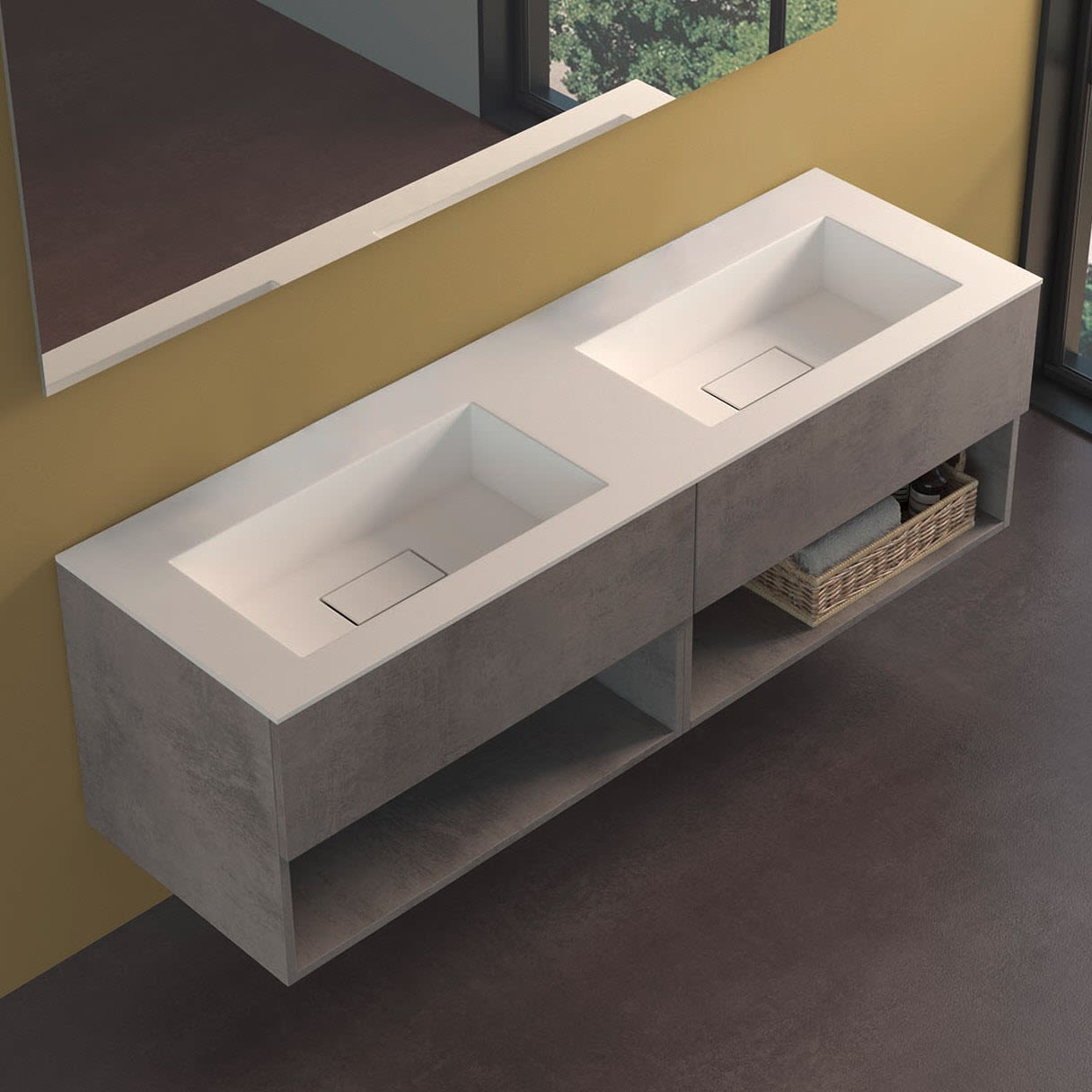progettobagno Evo 54 Lago Uno Doppel-Waschtisch mit Unterschrank 160 cm ohne Hahnloch MB54E160L2APHISRDA4, Badmöbel,