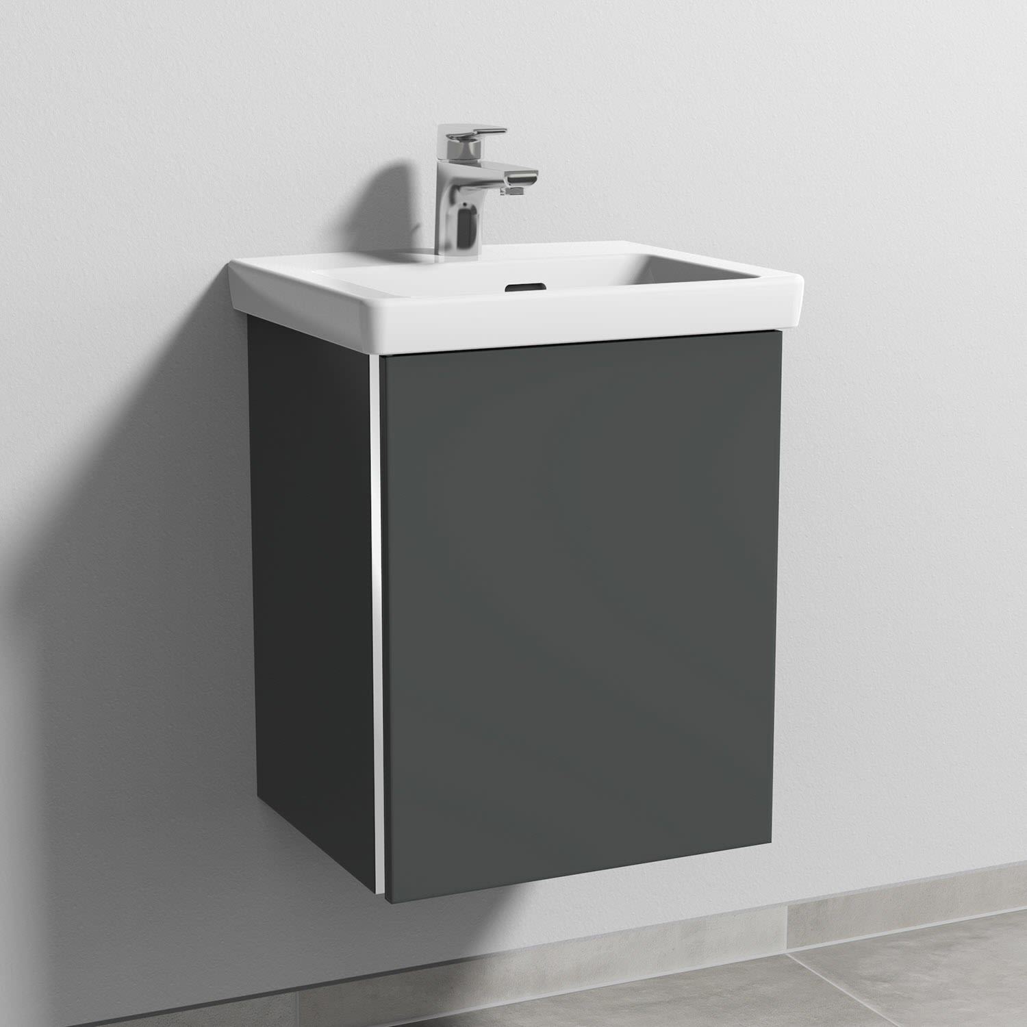 burgbad Fiumo Mineralguss-Waschtisch mit Unterschrank 47 cm, mit 1 Tür, Anschlag links, mit Griff G0146, Badmöbel,