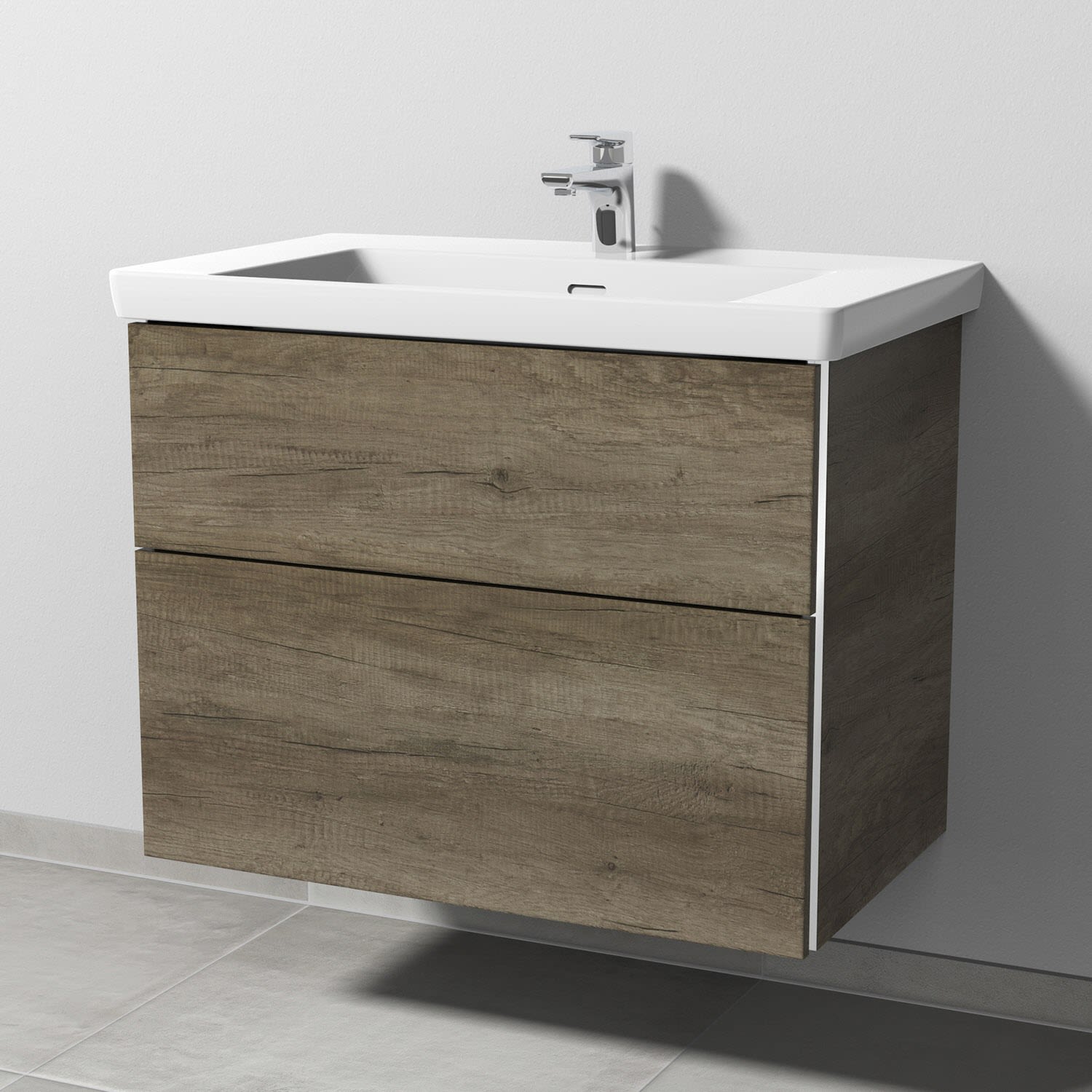 Sanipa 3way Unterschrank 80 cm, 2 Auszüge mit Villeroy & Boch Subway 3.0 Waschtisch, Badmöbel,