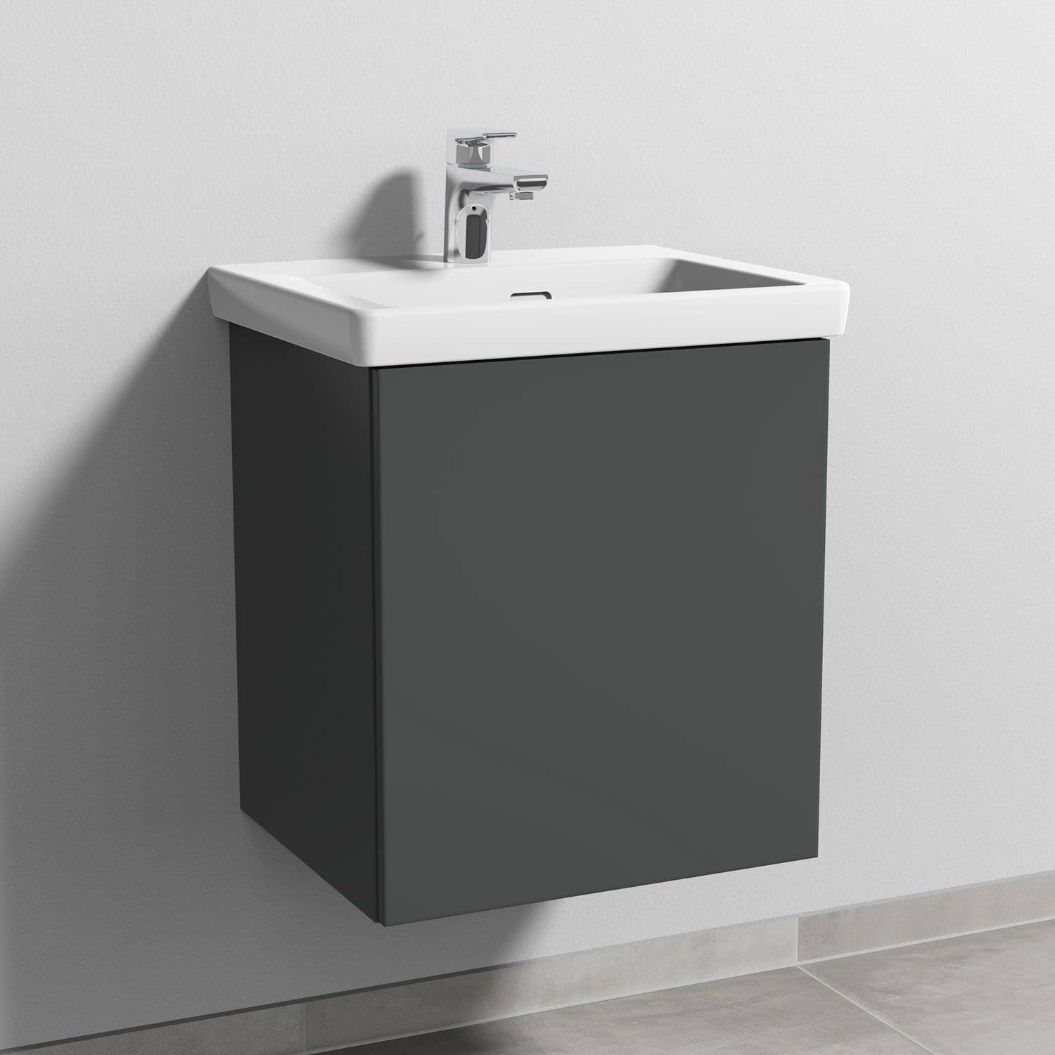 Waschtisch mit Unterschrank 50cm Alast Badmöbel Set Hochglanz Dunklegrau Keramik Waschbecken mit Unterschrank MDF Softclose