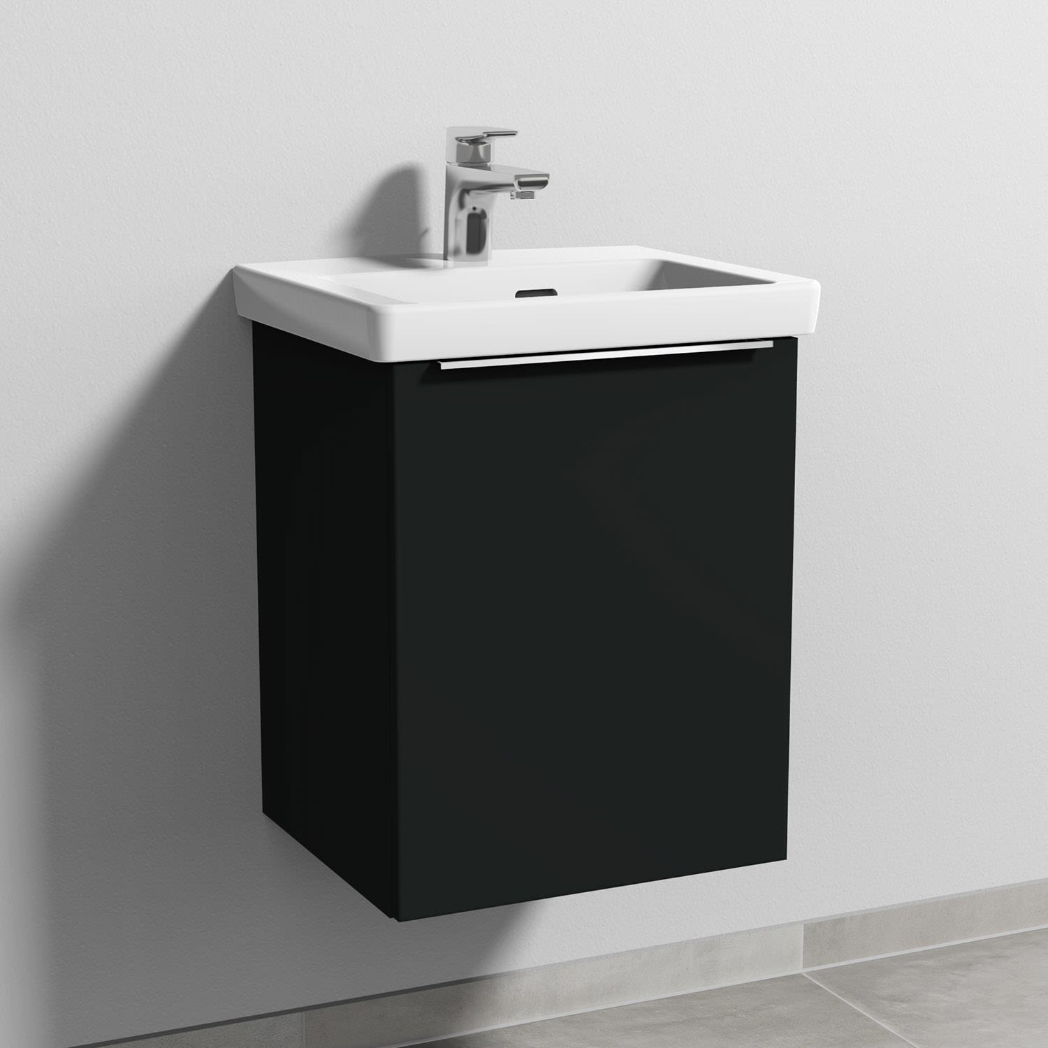 Planetmöbel Badmöbel-Set Waschtisch mit Unterschrank 45 cm Weiß mit Armatur Schwarz