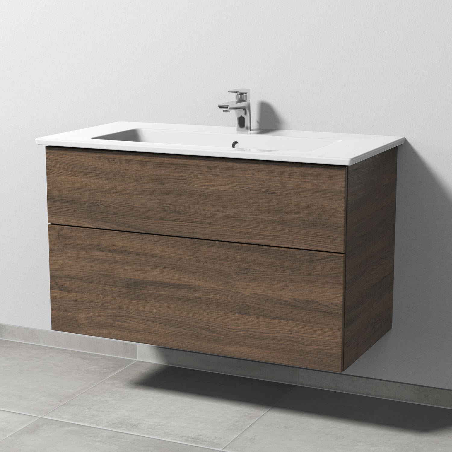 Sanipa 3way Unterschrank 100 cm, 2 Auszüge mit Villeroy & Boch Subway 3.0 Waschtisch, Badmöbel,