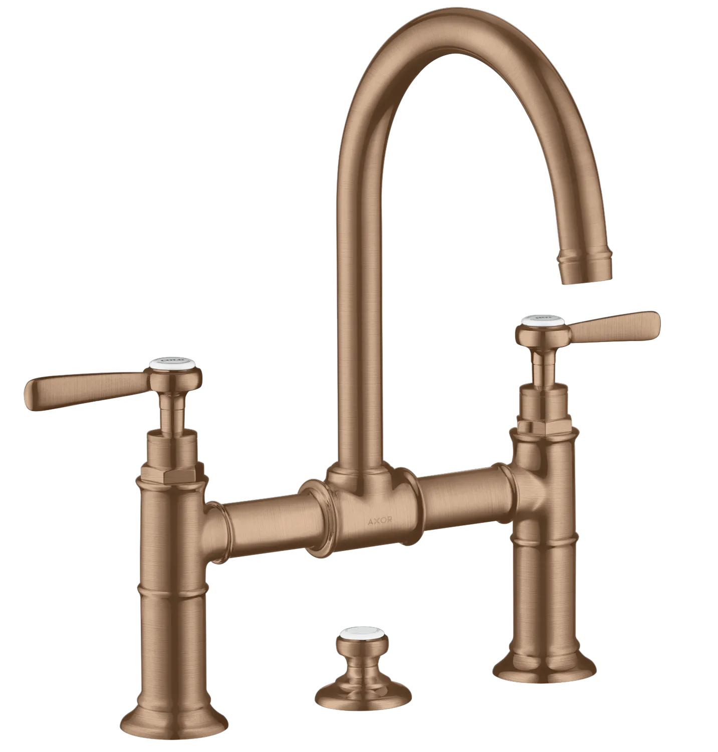 Hansgrohe AXOR Montreux 2-Griff Waschtischarmatur 220 mit Hebelgriffen und Zugstangen-Ablaufgarnitur, Brushed Red Gold
