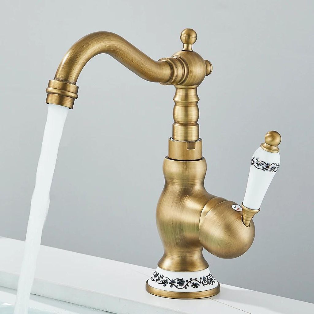 Badarmatur Wasserhahn Retro Armatur Elegant Einhebel Armatur Waschtischarmatur Kreuzgriff Waschbecken Einhandmischer Spültischarmatur Zweigriff f...