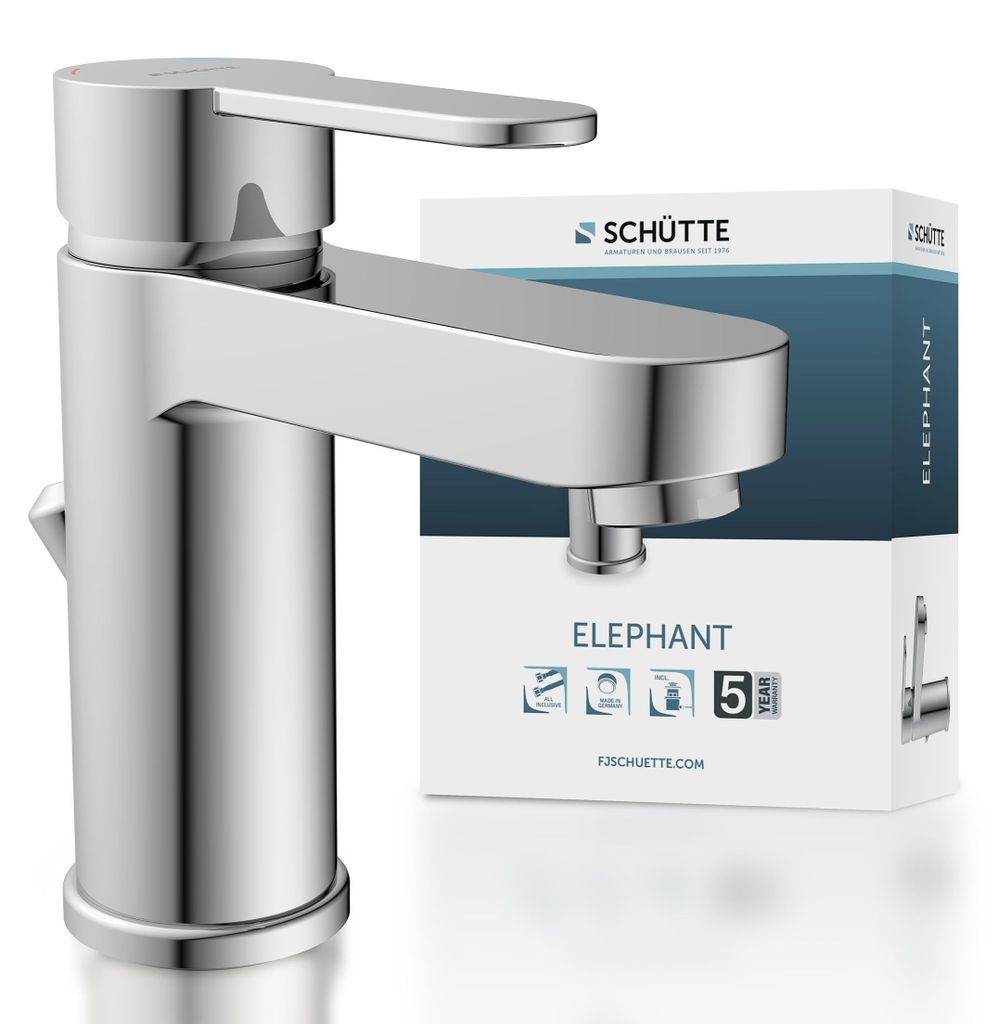 SCHÜTTE ELEPHANT, Waschtischarmatur mit Zugstange, Wasserhahn Bad mit Ablaufgarnitur Waschbecken in Chrom