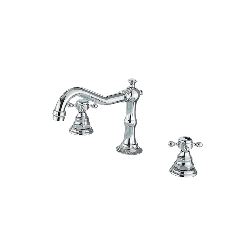 KLARWERK JULIAN | Vintage 3-Loch Badarmatur Chrom glänzend| Premium Retro Edelstahl Wasserhahn Waschbecken | Antike 2-Griff Mischbatterie Silber